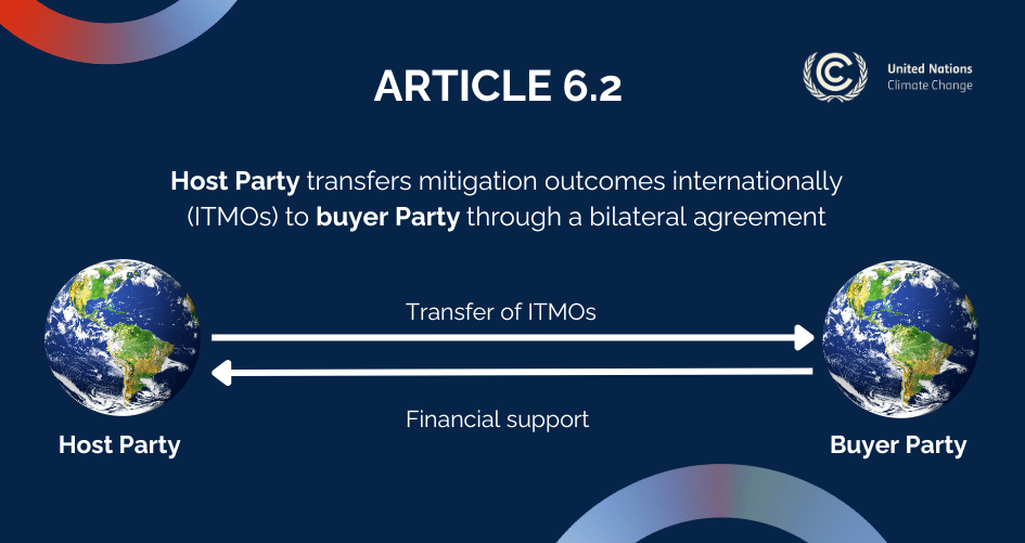 Article 6.2 of the Paris Agreement establishes a cooperative framework that allows countries and private entities to cooperate directly (bilaterally) using so-called internationally transferred mitigation outcomes (ITMOs). The article facilitates the international transfer of mitigation outcomes, meaning that a country or corporation can count emission reductions achieved in other countries towards its own climate targets under bilateral or plurilateral agreements. Once authorised by the host country, ITMOs can be used by countries to achieve their NDCs, by aircraft operators to offset their emissions in the Carbon Offsetting and Reduction Scheme for International Aviation (CORSIA), and by private actors to offset their emissions in the voluntary carbon market (VCM). Participating parties are relatively flexible in designing their cooperation and rely on national administrative frameworks to facilitate trading. The UNFCCC provides guidance to ensure that the transactions comply with rules on transparency, accounting practices and environmental integrity. Parties participating in a cooperative approach under Article 6.2 must appoint an authority responsible for the authorisation of ITMOs (Designated National Authorities). They must also use national or third-party registries or use the centralised UNFCCC’s International Registry for ITMOs, which tracks all exchanges (including from other registries) and is set to become interoperable with Article 6.4, as well. Finally, they must fulfil reporting obligations, including initial reports, annual information, and biennial transparency reports (BTRs).