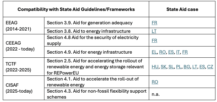 Where the observed investments are insufficient to achieve these objectives, MS can apply NFFSS consisting of payments for the available non-fossil flexible capacity. The Regulation also includes specific requirements for NFFSS design. They should, for example, be limited to new investments, consider locational criteria, and preserve exposure to price variation and market risk. Published in 2025, the new State Aid Framework (CISAF)[4], provides additional guidance for the design and operation of NFFSS.