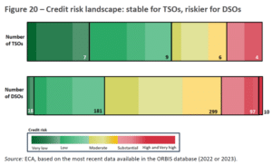 The plans are not yet fully aligned with the ambition to reach net zero, and it will be difficult to stick to the plans in the current setup. The European Court of Auditors refers to the credit risk landscape of TSOs as “stable”, while DSOs are labelled “riskier”. Addressing credit risk is important if we want to keep the investment costs under control. Reducing risk can be done by changing the regulatory framework, improving the debt/equity ratio, and there are also talks about providing financial guarantees.