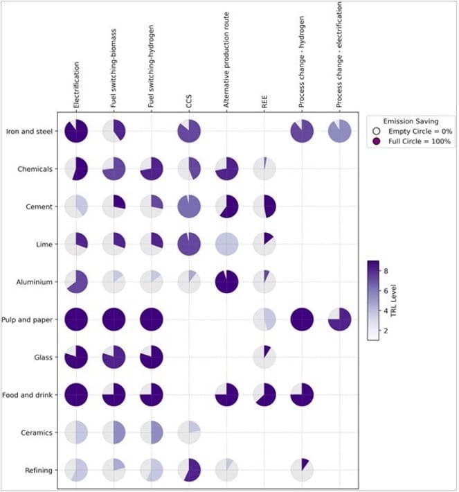 Figure 1 – Options for industrial decarbonization: technological readiness versus abatement potential